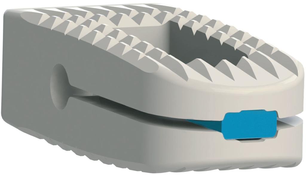 Der Expandable PLIF PEEK Cage verfügt über ein einzigartiges Design und sorgt damit für eine verbesserte Stabilität zwischen den Wirbelknochen. Durch die Zahnstruktur wird die Position des Cages fixiert und ein Verrutschen verhindert. Ein speziell entworfener Spreizschaft (Patent angemeldet) besitzt Transplantatöffnungen, die nach Einfügen des Expandable PLIF PEEK Cage das Auffüllen mit Knochentransplantat ermöglichen.
